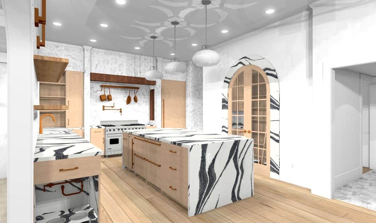 A couple in Sandy Springs purchased an existing house in an ideal location, but the plan layout did not function well for their growing family. A Master Plan was developed that will allow construction to proceed as funds become available. Phase one will be an extensive redesign of the Second Floor which will include a third Bedroom in an existing unfinished attic space. The Bathrooms will feature new fixture and cabinet plans and will be relocated for an improved functional layout. To promote a sustainable approach, only a dormer required by code for light and ventilation will be added to the third Bedroom. A future phase will include a complete reconfiguration of the Kitchen as well as adding additional cabinet storage and built-in seating in the adjacent Breakfast area and Sunroom.